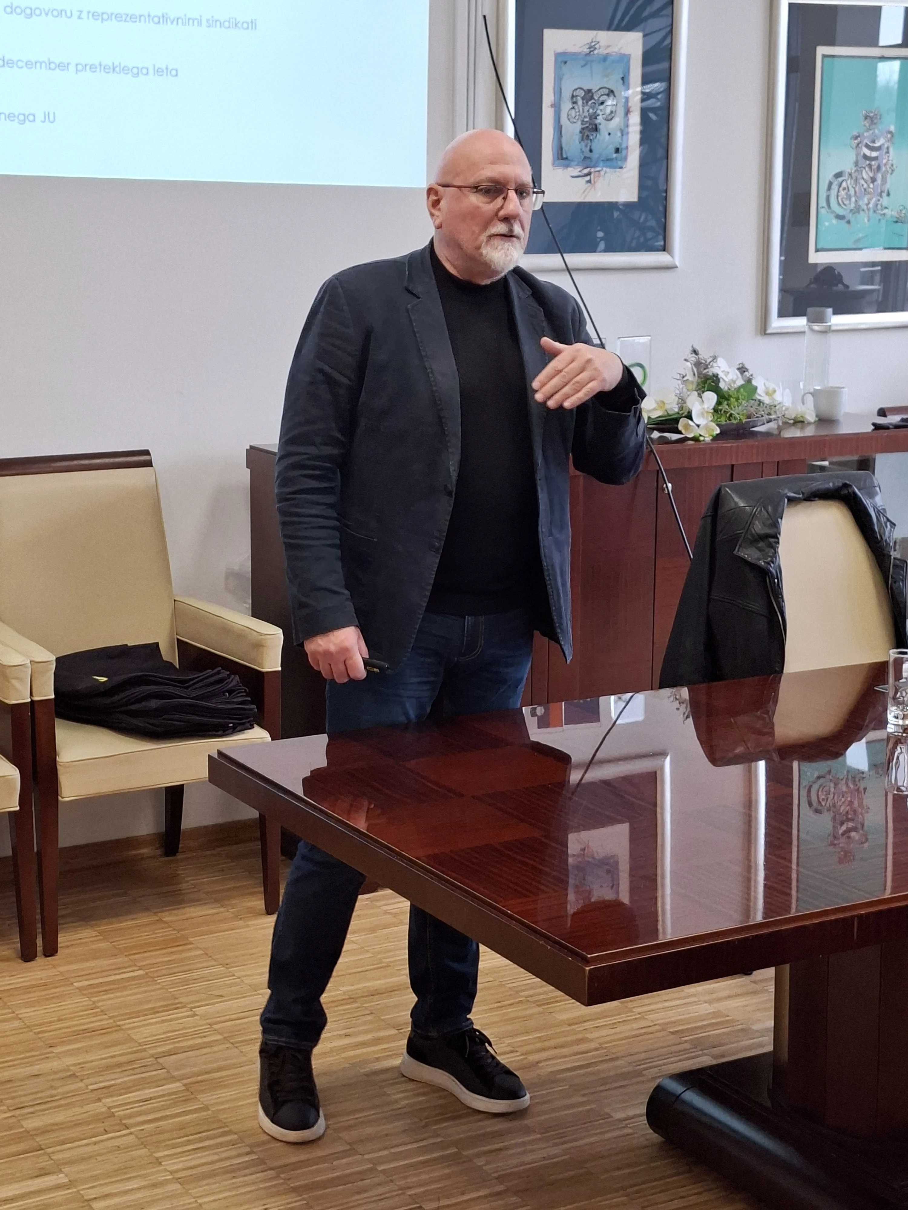 Izredno zanimivo predavanje je vodil mag. Branko Vidič, vodja Sektorja za plače v javnem sektorju, ki je najprej predstavil teoretična izhodišča delovne uspešnosti ter ključne spremembe nove ureditve. V nadaljevanju je sledila predstavitev in konkretna uporaba Pripomočka za izračun delovne uspešnosti, pri čemer so udeleženci na praktičnih primerih dobili vpogled v način izračuna in uporabo novih pravil v praksi.